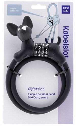 • PexKids Cijfer KABELSLOT Zwart Flappie de Waakhond silicone SL400110